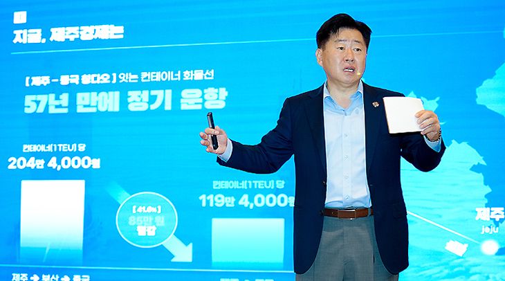 이날 포럼에서는 오영훈 도지사가 '모두가 함께 그리는 지속가능한 제주'를 주제로 특별 강연을 진행했다. 오 지사는 제주 경제 회복세를 소개하며, 수출 성과와 민생경제 활성화 노력을 강조했다.