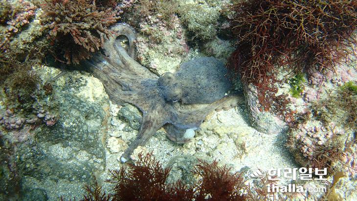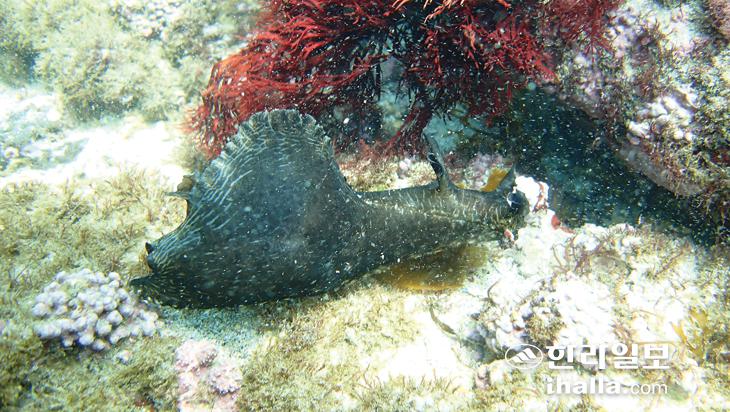 [한라일보] 본보 해양탐사팀은 지난 7월 31일 오후 2시, 제주시 구좌읍 하도리 마을어장을 찾았다. 제9호 태풍 '크로사'의 간접 영향으로 제주 해안에는 강한 바람과 높은 물결이 일었지만, 만 지형인 이곳은 비교적 잔잔했다.