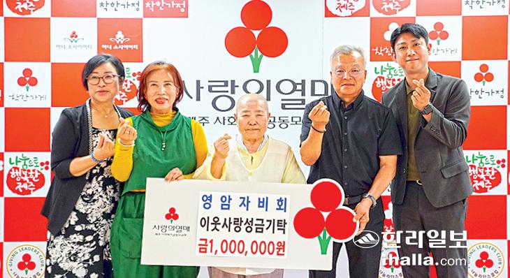 (재)일붕선교종 영암사 영암자비회(주지 제법스님)는 지난 21일 제주사회복지공동모금회(회장 강지언)를 방문해 이웃사랑 성금 100만원을 기탁했다.