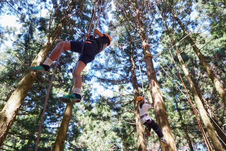 제주도내 최초로 산림청 산림교육센터로 지정된 붉은오름자연휴양림 산림교육센터에서 트리클라이밍 체험을 하고 있다. 서귀포시 제공