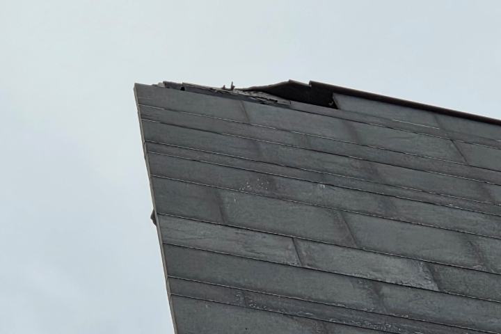 8일 서귀포시 법환동의 한 5층 건물 옥상의 외벽이 파손된 모습. 제주소방안전본부 제공