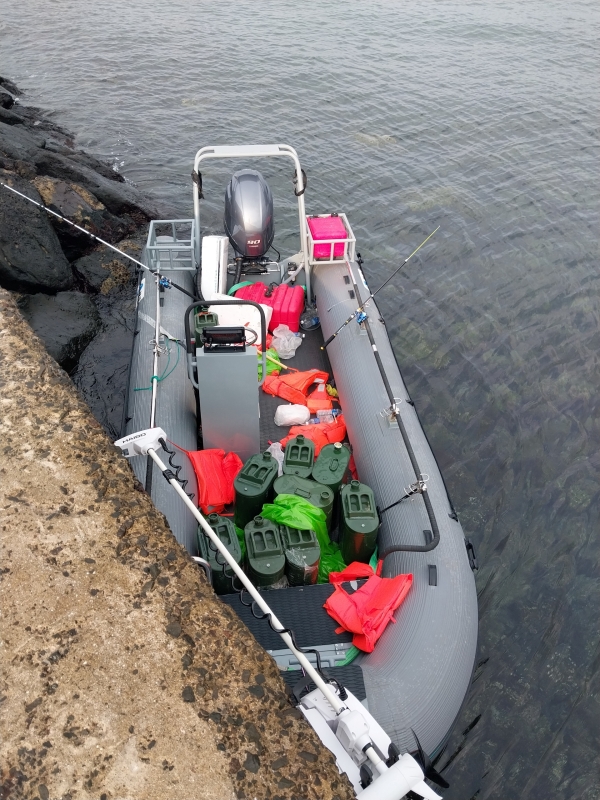 지난 8일 오전 7시 56분쯤 한경면 용수리 해녀탈의장 인근 해안에서 미확인 고무보트 발견됐다. 독자 제공
