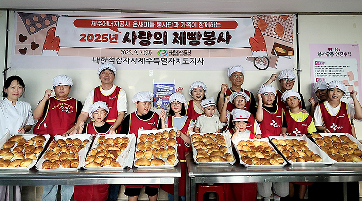 제주에너지공사 직원 및 가족은 지난 9일 제주적십자사 내 빵나눔터에서 사랑의 빵 나눔 봉사활동을 실시했다.