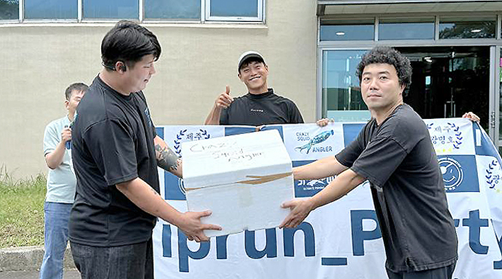 오픈카카오톡 낚시 동호회 'Crazy Squid Angler' 회원들이 지난 3일 제주애덕의집(대표 이정애)에 무늬오징어를 후원했다.