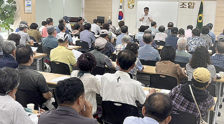 이날엔 김인삼 세무사가 강사로 나서 농지 양도, 증여, 상속에 따른 세금 감면과 절세방법 등 농업관련 일상적 세법을 풍부한 실무경험과 사례를 중심으로 알기 쉽게 풀어내며 호응을 얻었다.