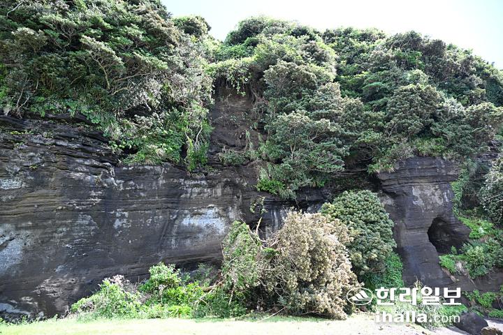 지난 15일 오후 서귀포시 성산읍 성산일출봉에서 암반과 나무가 낙하했다. 강희만기자