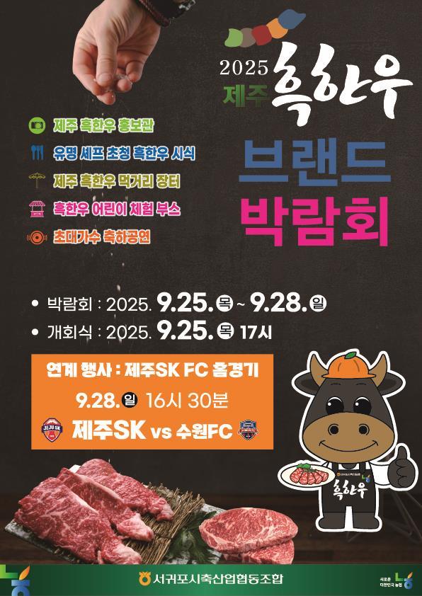 서귀포시는 25~28일 나흘 동안 서귀포시축산업협동조합이 주관하는 '2025 제주 흑한우 브랜드 박람회'가 제주월드컵경기장 광장에서 열린다고 23일 밝혔다.