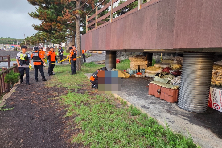 25일 오전 서귀포시 하효동 쇠소깍 방파제 동쪽에서 20대 남성 A씨로 추정되는 시신이 발견됐다. 서귀포해양경찰서 제공