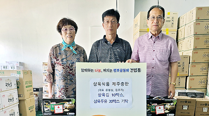 삼육식품제주총판(대표 윤봉실·김추자)는 지난 24일 추석을 맞아 제주시 건입동 내 저소득 가구에 전달해달라며 건강두유 20박스와 김세트 10개를 건입동주민센터(동장 김미성) 나눔뱅크에 기탁했다.