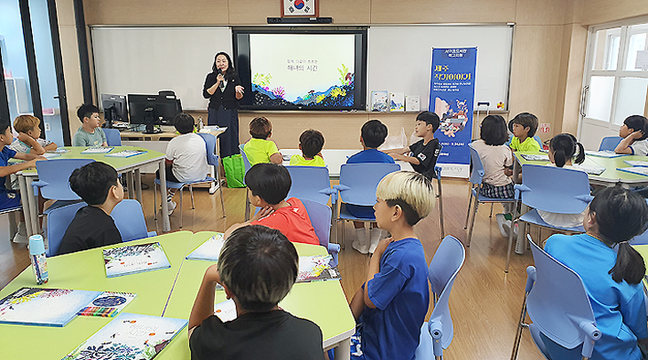서귀포초등학교(교장 오영실)는 지난 24일 무한상상실에서 3학년 학생들을 대상으로 '제주 작가 이야기' 프로그램을 운영했다.