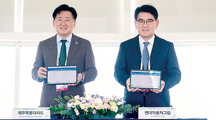 [한라일보] 제주도와 현대자동차그룹은 지난 25일 '2025 그린수소 글로벌 포럼' 현장에서 '그린수소와 분산에너지로 여는 케이(K)-탄소중립 이니셔티브' 업무 협약을 체결했다.