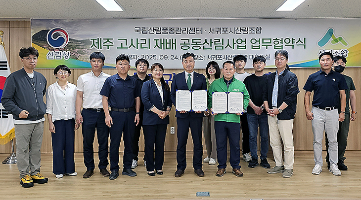 공동산림사업은 국유림을 활용해 산림사업을 효율적으로 추진하고, 지역사회의 발전과 주민 소득 증대를 위해 국가와 지방자치단체, 민간등이 협력해 추진하는 제도다. 이번 협약으로 서귀포시산림조합은 국립산림품종관리센터 제주지소 동홍채종원에서 제주의 대표적인 임산물인 고사리를 재배·육성·관리해 지역 일자리 창출과 제주산 임산물 유통 활성화를 추진할 계획이다.