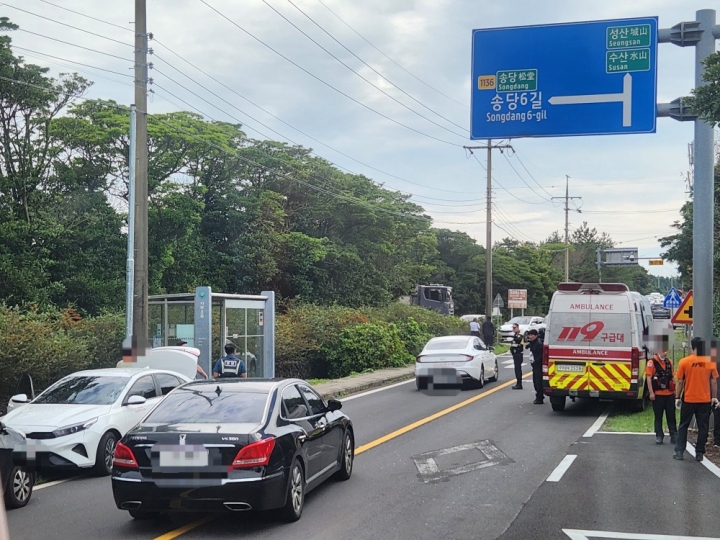 30일 오전 제주시 구좌읍의 한 도로에서 40대 여성이 승용차에 치어 심정지 상태로 구조됐다. 제주소방안전본부 제공