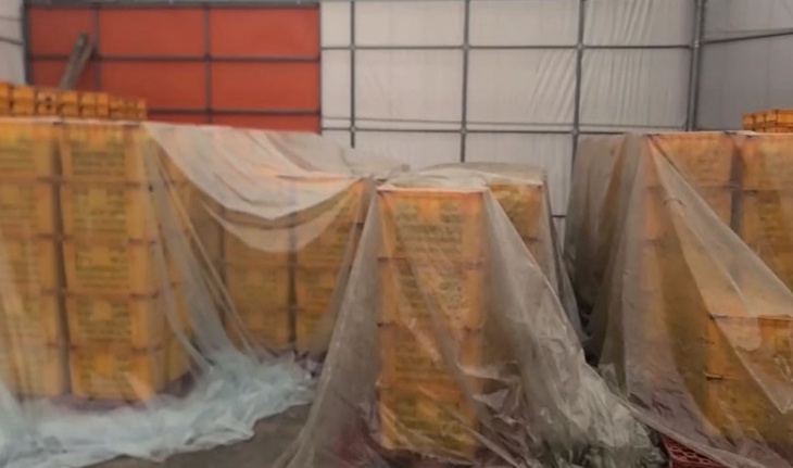 사진=강제 착색을 위해 약품 살포 후 비닐을 씌워 보관 중인 감귤. 제주도자치경찰단 제공