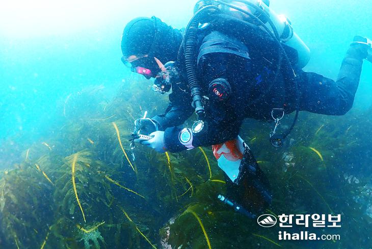 올해 탐사는 지난 5월 제주시 구좌읍 평대리에서 시작됐다. 미역은 예년보다 번성했지만 우뭇가사리와 톳은 수온 상승과 육상 오염물질 유입으로 급감했다. 일과리에서는 긴침성게의 북상이 포착됐고, 고수온 여파로 해조류 군락이 급속히 무너졌다.