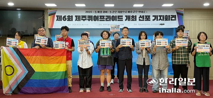제주퀴어프라이드 조직위원회는 13일 오전 제주도의회 도민카페에서 다음달 1일 열리는 제6회 제주퀴어프라이드 개최 선포 기자회견을 열었다.