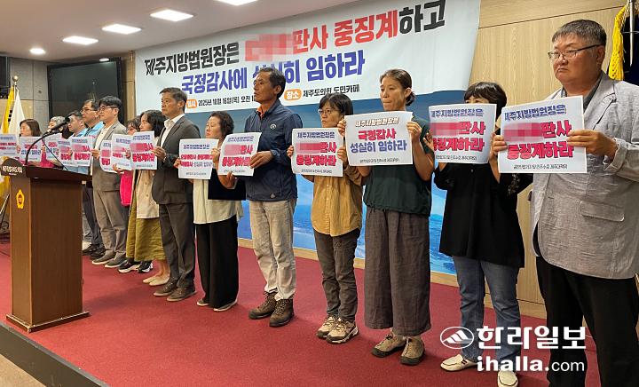 공안탄압저지 및 민주수호 제주대책위원회는 16일 오전 제주도의회 도민카페에서 기자회견을 열고 “제주지방법원 A판사는 국정감사에 출석하라”고 촉구했다.