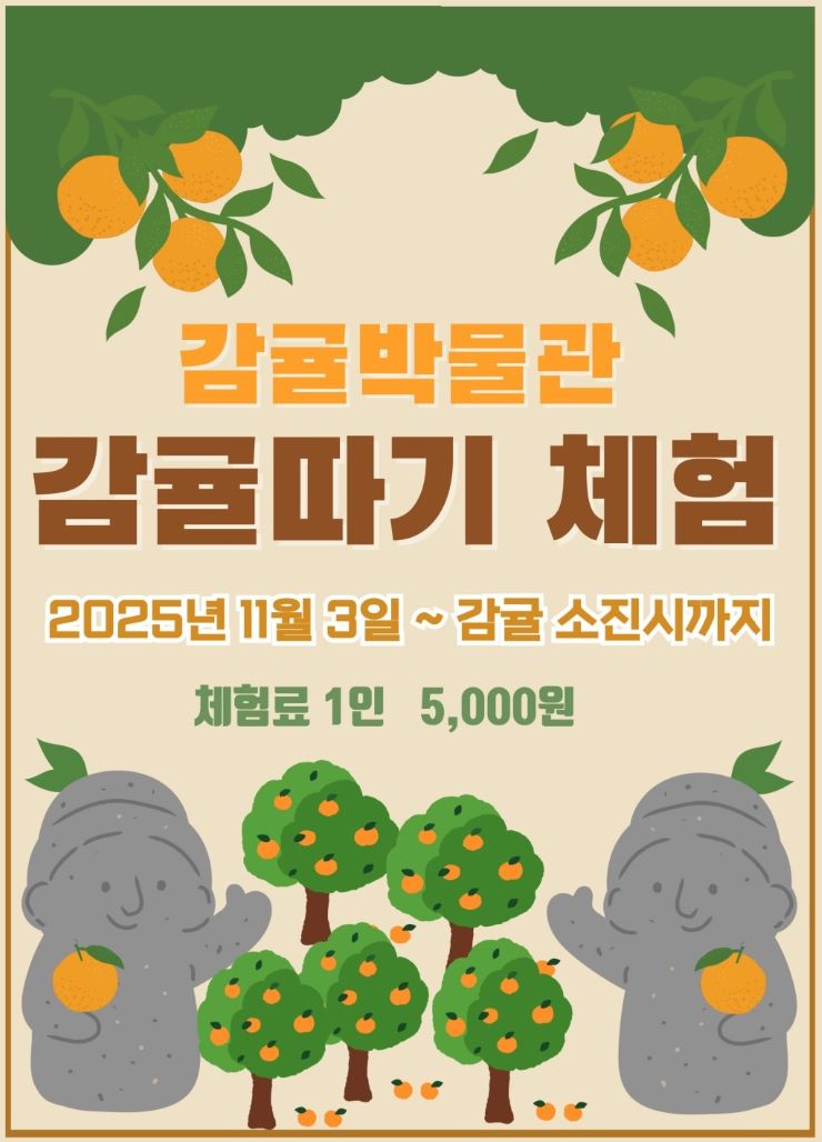 감귤박물관은 11월 3일부터 12월 30일까지 '2025년 감귤따기 체험' 프로그램을 운영한다고 23일 밝혔다.