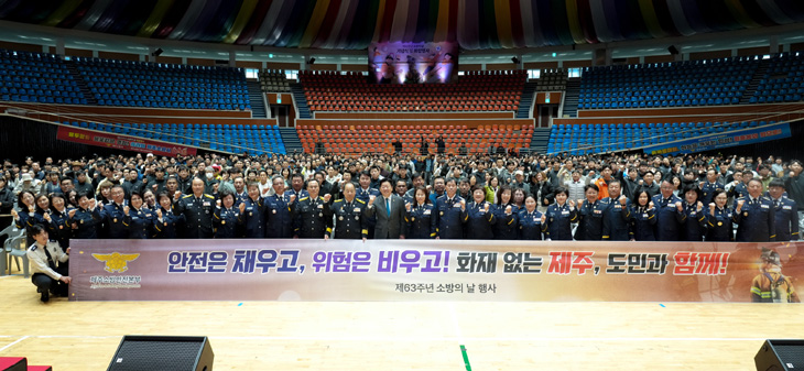 [한라일보] 제주도 소방안전본부(본부장 박진수)는 11일 제주 한라체육관에서 '제63주년 소방의 날 기념행사'를 개최했다. 이번 행사의 주제는 '생명존중, 국민안전 최우선'이다.