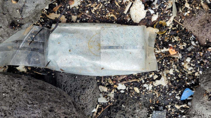지난 17일 오후 우도 해안에서 마약으로 추정되는 차 봉지가 발견됐다. 제주경찰청 제공