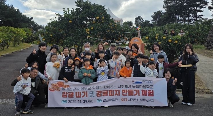 서귀포시는 29일 서울 등에서 제주로 농어촌유학을 온 초등학생과 학부모를 대상으로 감귤따기 등 체험프로그램을 진행했다. 서귀포시 제공