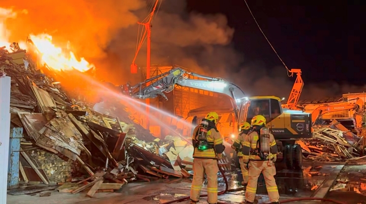 지난 1일 밤 서귀포시 토평동의 한 에너지업체 야적장에서 화재가 발생해 소방당국이 진압에 나섰다. 제주소방안전본부 제공