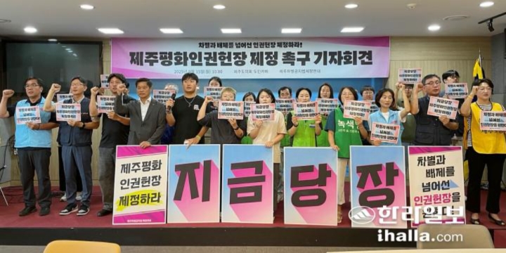 제주평화인권헌장 제정 촉구 기자회견. 한라일보 자료사진