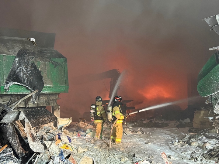 4일 오후 제주시 노형동의 한 자원순환관리 시설에서 화재가 발생해 소방이 진압에 나섰다. 제주소방안전본부 제공