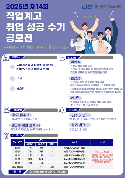 [한라일보] 제14회 직업계고 취업 성공 수기 공모전이 오는 8일부터 내년 1월 2일까지 진행된다.