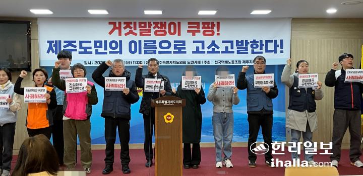 고(故) 오승용 씨의 유가족과 전국택배노동조합 제주지부는 5일 오전 제주도의회 도민카페에서 기자회견을 열고 “거짓말쟁이 쿠팡을 제주도민의 이름으로 고소·고발한다”고 밝혔다.
