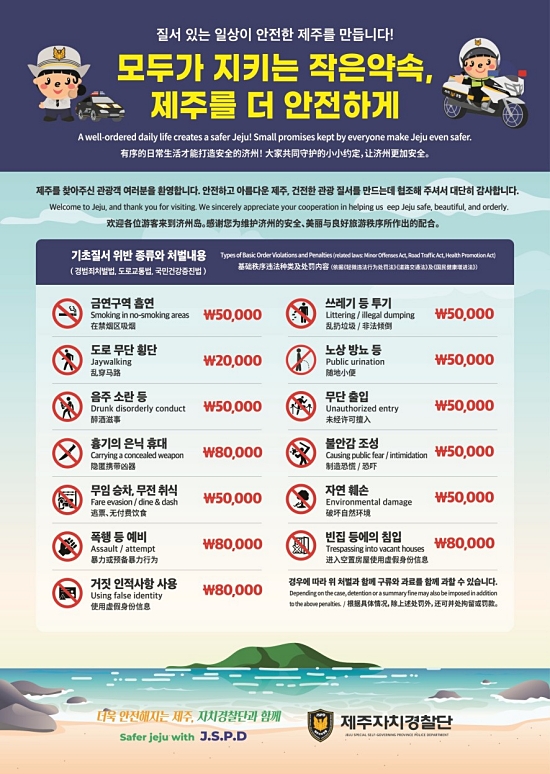 외국인 관광객 기초질서 안내 서한문. 제주도자치경찰단 제공