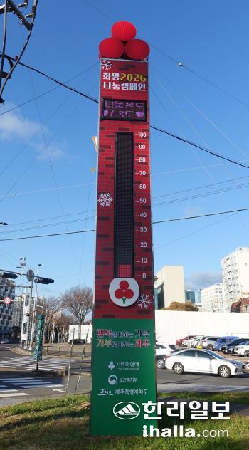제주시 연동 신시가지 입구 교차로 위치한 사랑의 온도탑.