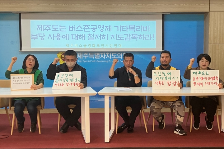 [한라일보] 제주시민사회단체가 버스준공영제 기타복리비가 부당 사용에 대한 제주도의 관리감독이 소홀하다는 주장을 제기했다.