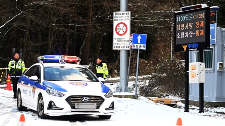 폭설로 인해 도로가 통제된 1100도로. 한라일보 자료사진