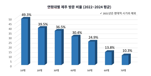 또 "연령대별 제주 방문율을 통계청의 장래 인구추계(중위)에 적용해 분석하면 내국인 방문객 수는 2030년부터 계속 줄어들어 2050년 1000만명, 2070년 750만명으로 감소한다"며 "항공수요는 2030년 약 3100만명을 정점으로 2050년 2480만명으로 감소할 것"이라고 내다봤다.