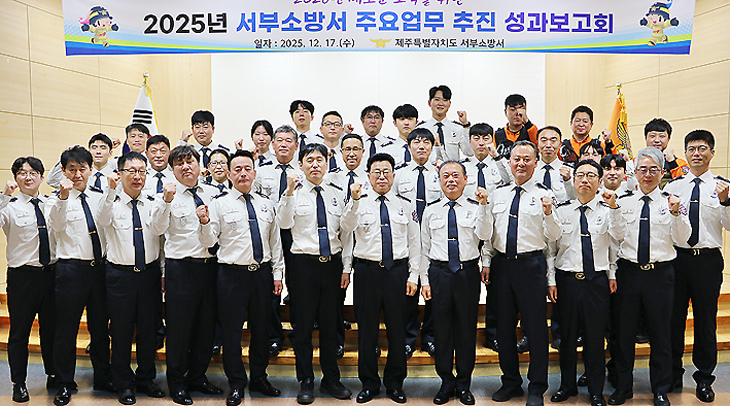 제주 서부소방서(서장 김승용)는 지난 17일 서부소방서 대회의실에서 전 직원을 대상으로 '2025년 주요업무 추진 성과보고회'를 개최했다.