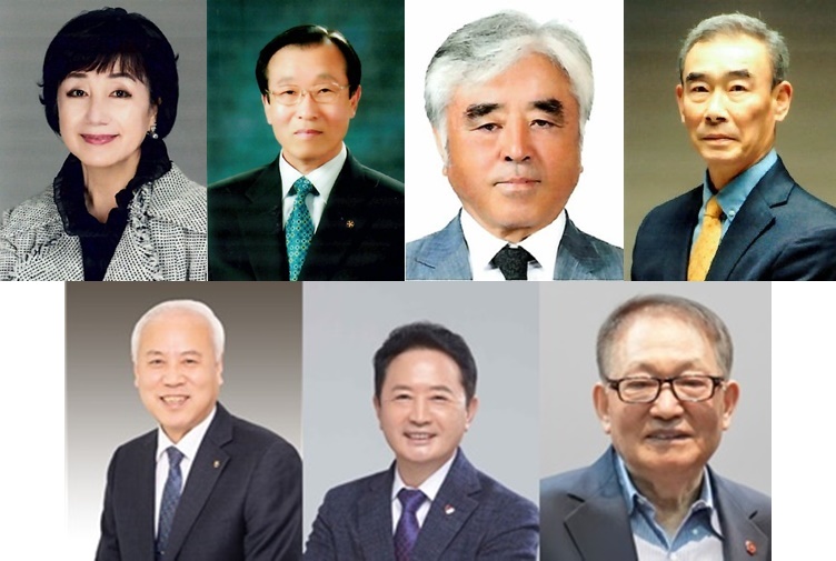 왼쪽부터 ▷예술 부문 김현숙 ▷교육 부문 김계담 ▷언론·출판 부문 고홍철 ▷체육 부문 오선홍 ▷1차산업 부문 고봉주 ▷국내 재외도민 부문 허능필 ▷국외 재외도민 부문 이한진. 제주도 제공