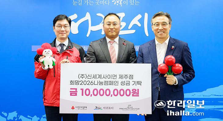 (주)신세계사이먼(대표 김영섭)은 지난 17일 서귀포시청에서 정상기 제주점장, 정종헌 제주사회복지공동모금회 사무처장 등이 참석한 가운데 지역 내 어려운 이웃을 돕기 위한 성금 1000만원을 제주사회복지공동모금회에 기탁했다.