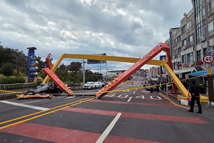 23일 오후 서귀포 칠십리 음식특화거리의 구조물이 파손되는 사고가 발생했다. 제주소방안전본부 제공