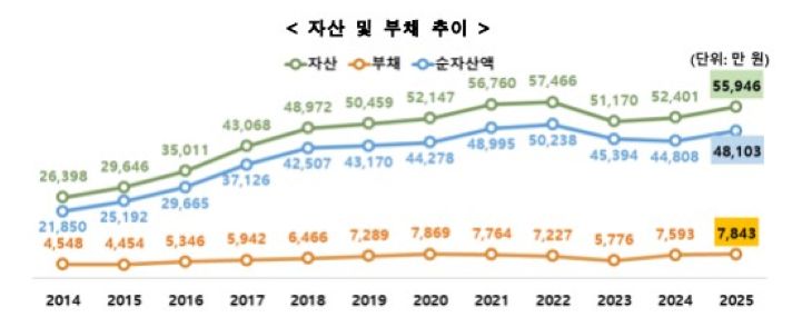 부채도 비슷한 흐름이다. 2020년 7869만원에서 2021년 감소로 전환해 2023년 5776만원까지 낮아졌지만 지난해부터 다시 증가세로 돌아섰다.