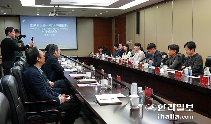 [한라일보] 제주도기자협회(회장 김익태)와 중국 장쑤성기자협회(주석 저우위에민)는 지난 26일 중국 난징시 신화보업미디어그룹에서 교류 간담회를 열고 제주와 장쑤성 언론 간 협력 방안을 논의했다.