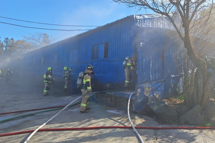 30일 낮 제주시 한림읍 금악리의 양돈장에서 화재가 발생했다. 제주소방안전본부 제공