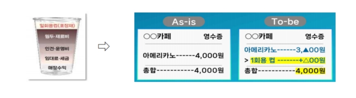 컵따로 계산제는 원재료와 인건비, 일회용컵 등 여러 비용을 반영해 설정된 음료값 중 일회용컵 가격은 얼마인지 영수증에 별도 표시하는 제도다. 일회용컵 보증금제처럼 컵을 반납할 의무는 없다.