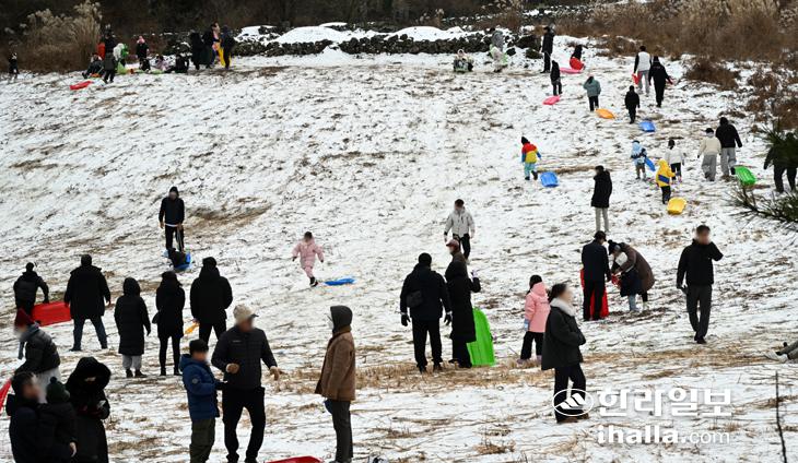눈썰매 즐기는 도민들