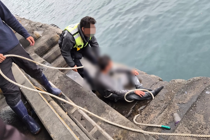 지난 5일 오전 10시 58분쯤 서귀포시 모슬포수협 위판장 인근에서 50대 남성 A씨가 물에 빠졌다는 신고가 접수됐다. 서귀포해양경찰서 제공