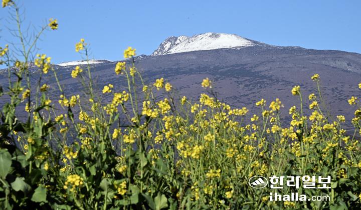 겨울 속 봄 정취… 만설 백록담과 유채꽃