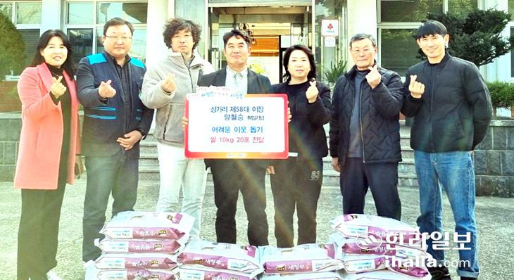 양철승 제58대 상가리 이장은 지난 14일 지역 내 어려운 이웃들에게 전달해 달라며 애월읍사무소(읍장 김태헌)에 쌀 10㎏ 20포대를 기탁했다.