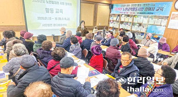 [한라일보]사단법인혼디배움센터(이사장 김경애)는 13~16일 노인일자리 공익형활동사업 공공시설안전지킴이 참여자 350명을 대상으로 센터교육실에서 활동교육을 실시하고 있다.