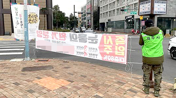 제주시 이도1동(동장 부성하)은 최근 도시 미관을 저해하는 불법유동광고물 정비에 나섰다.