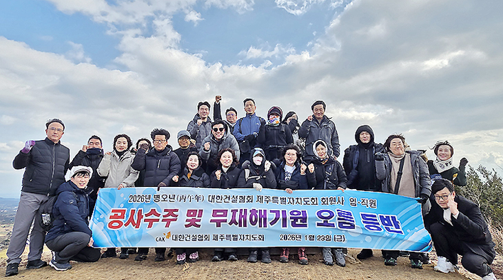 대한건설협회 제주특별자치도회(회장 김기춘)는 지난 23일 회원사 임·직원 및 유관단체와 함께 따라비오름을 올라 회원사의 새로운 출발과 도약을 알렸다.